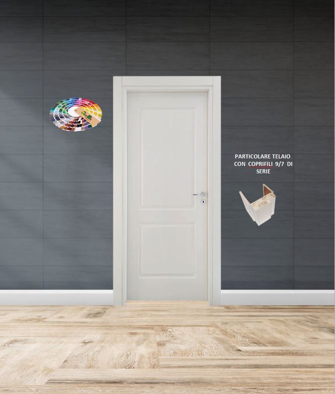 Le porte Stampate, sono porte dalle linee classiche e moderne. Sono disponibili in due modelli Vittoria e Jana laccate Sim Ral 9010 con telaio in listellare e coprifili in multistrato da 9/7cm di serie. Su entrambi i modelli è prevista la serratura magnetica e le cerniere a scomparsa. Con supplemento è possibile scegliere un colore laccato Ral opaco diverso dal 9010.